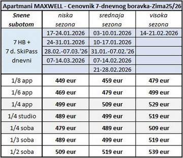 Aparthotel MAX - SPECIJALNA CENA paketa 7HB + 7-dnevni skipas za dnevno skijanje.