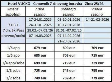 Aparthotel VUČKO - SPECIJALNA CENA paketa 7HB + 7-dnevni dnevno/noćni skipas.