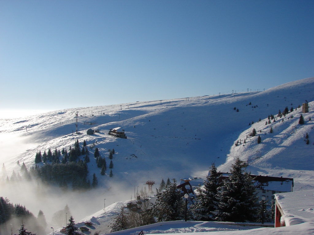 Slike snimljene nakon ponovnog obnavaljanja skijališta Popova Šapka na Šar Planini, Makedonija.. Na slicu su pejzaži u zimskom ambijentu, slike skijališta i ski staza, slike turističkog naselja..