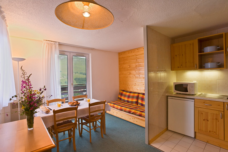 Apartmani se nalaze u različitim apartmanskim rezidencijama u centralnom delu Les 2 Alpes na 1650 m/nv, udaljeni od najbliže staze ili žičare do 300 metara. Skijaši su generalno orjentisani na gondolu Janri expres ili žičaru Diablo. Shutle bus saobraća kroz celo naselje, pa skijanje možete započeti ili završiti u bilo kojem delu ski centra. Les 2 Alpes je živo turističko mesto, bogato trgovinama i mogućnostima za noćni provod. Supermarket i pekara su u blizini.